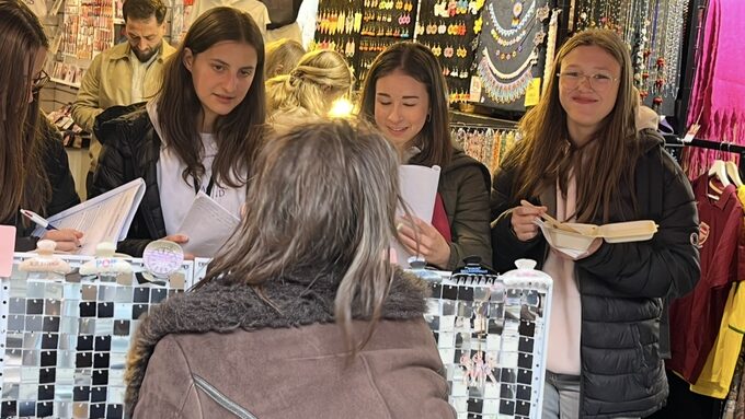 Ce matin, par petits groupes, les élèves ont interviewé plusieurs commerçants à Camden Market en s’aidant d’une liste de questions préparées en classe.